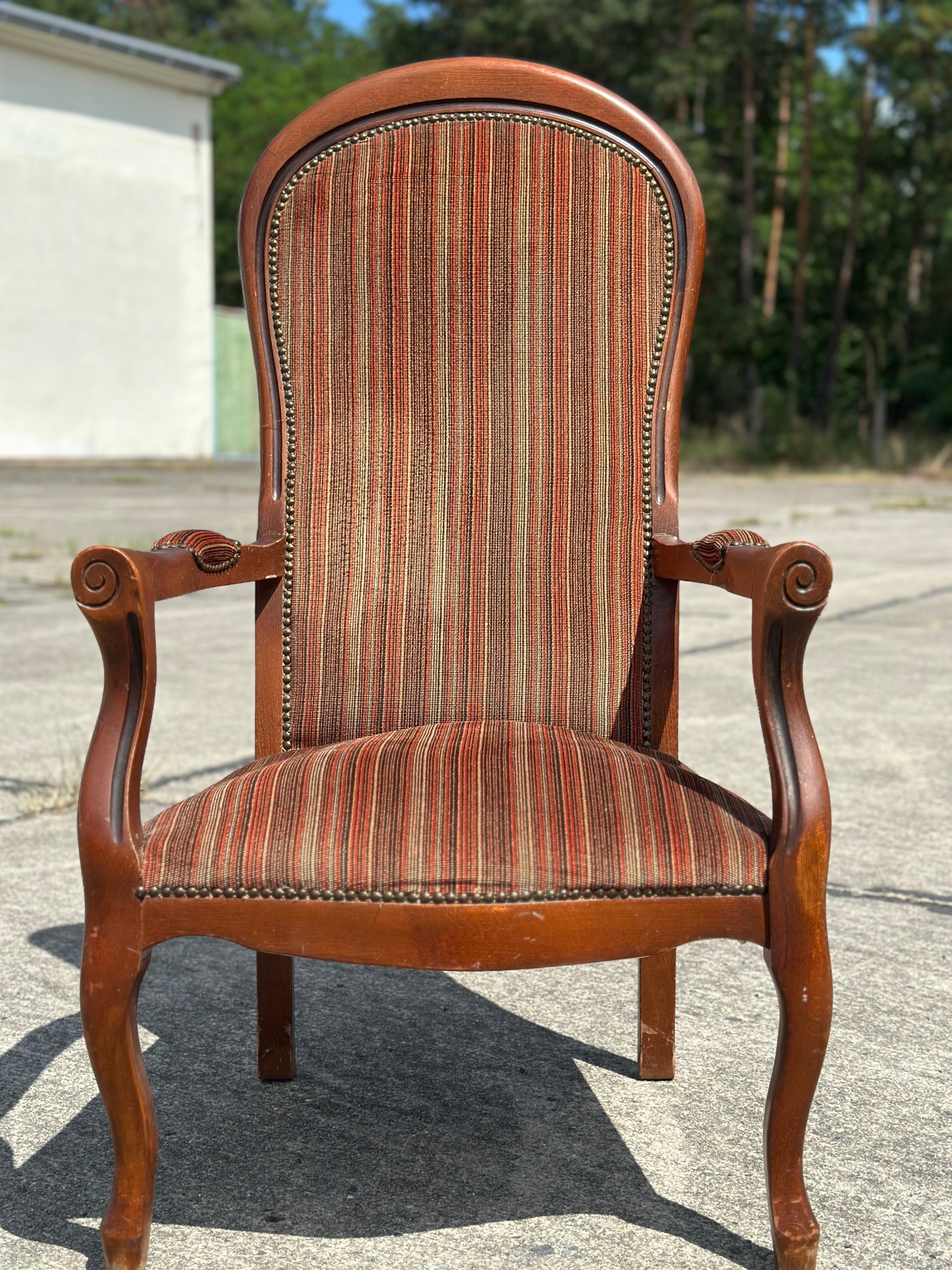 Spójrzcie proszę na ten kolejny cudny fotel ludwikowski. Jak wszystko co sprzedajemy - przyjechał z Francji, prosto z Alzacji. Jest bardzo ładny oraz stabilny. Nosi normalne ślady użytkowania ❤️