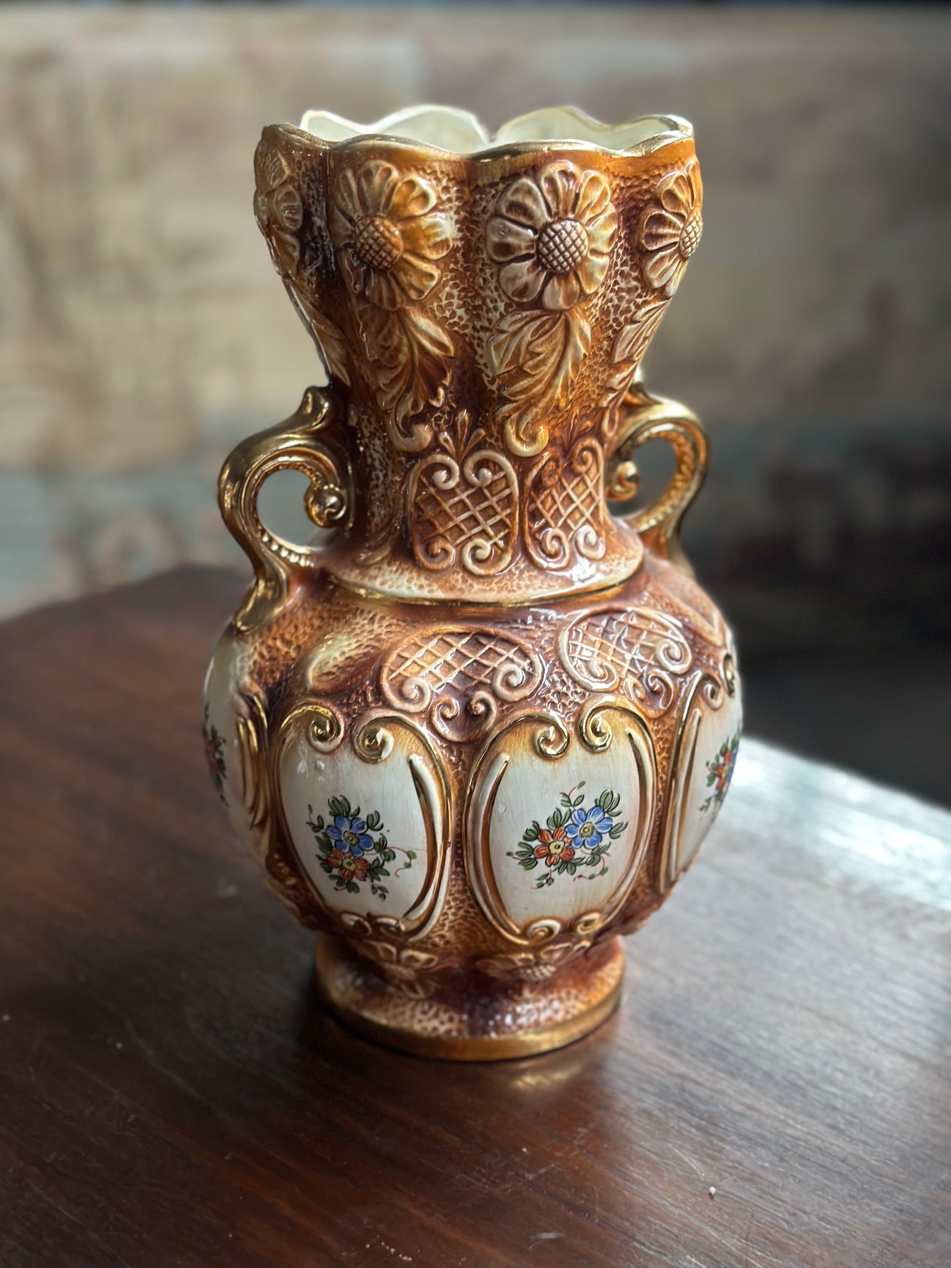 Waza Vintage "Wiktoriański Karmel" - Ceramika Zdobiona Z Francji