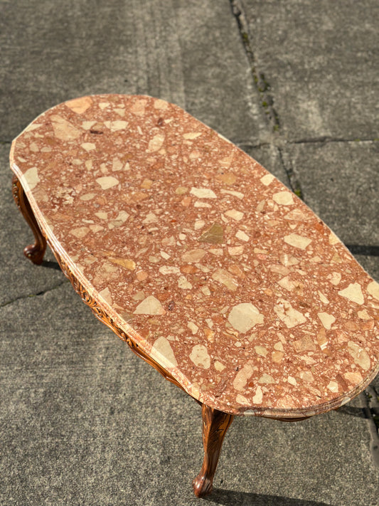 Stolik kawowy w stylu ludwikowskim z marmurowym blatem | Francja, XX w.